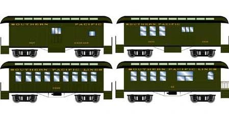Each Overton Passenger set contains 1 each of: Baggage, Combine, Coach and Observation car