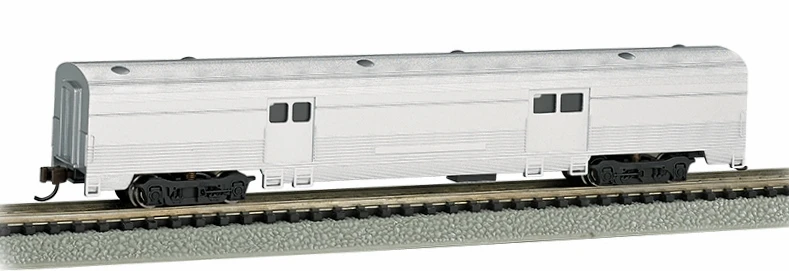 Bachmann Silver Series N 14654 72′ Streamline Fluted-Side 2-Door Baggage Car, Unlettered