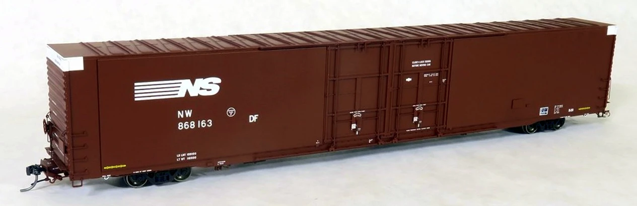 Illinois Central Gulf (ICG) “Delivery 1977” is our first Greenville 86′ auto parts offering in the ICG family of schemes. ICG had three distinct orders of Greenville double-door boxcars, and this group represents the 1977 delivery cars, the second of the three orders. The 1977 cars have body-mounted brake gear and End-of-Car Cushioning components. These stunning orange replicas continue our high-quality offerings for ICG cars, complete with the 10-foot I-ball logo, large Illinois Central Gulf lettering, plus white “Cushion Car” stenciling. These cars are a little different from some of the more traditional auto parts cars, as their return route stenciling directs them to “ICG RR, Centralia Illinois” – an artwork detail that we replicate faithfully!